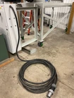 SSI Shredding System ME55E (40) 25 HP Dual-Shear shredder. This is Dual-Shear M55 series low speed, high torque, two shaft rotary shear shredder designed to handle tough materials like paper, metal and plastic. This model is typically used for bulky item reduction and product destruction. Following are unit details: 22" x 40" cutting chamber with standard funnel style hopper. Individually removable cleaning fingers. Unit has an optional removable (bolts in place) breaker bar that attaches to the support stand. The breaker bar helps minimize the length of friable/brittle materials like wood. Support stand is 48" tall x 84" inside ID between support legs. Unit is powered by a TEFC 460/3/60 motor. Control panel components are by Allen-Bradley with touch screen operator interface. Amperage overload & torque coupling slippage reversing rotors. Auto shutdown if frequent reversal of shredder occurs. Nema 4 control panel is mounted and 100% wired on the shredder support frame. UL/CUL 508 listed electrical panel. Logic to start/stop based on input from feed and discharge devices (conveyors). The shredder is set on a heavy-duty swivel wheeled movable frame that is designed to have a fork-liftable dumpster slid underneath. The 60 foot of power cord allows for flexibility for unit placement. The shredder has a full set of maintenance/operation/service and detailed drawings. Used has only 152 hours of total operation. The shredder was used to pre-process wood fiber and plastics in a materials testing facility. The original design selections for this shredder 750 lbs/hour of wood pallets, black bag garbage, plastics and paper. For videos of similar units in operation processing different materials checkout the SSI Shredding Systems web site.