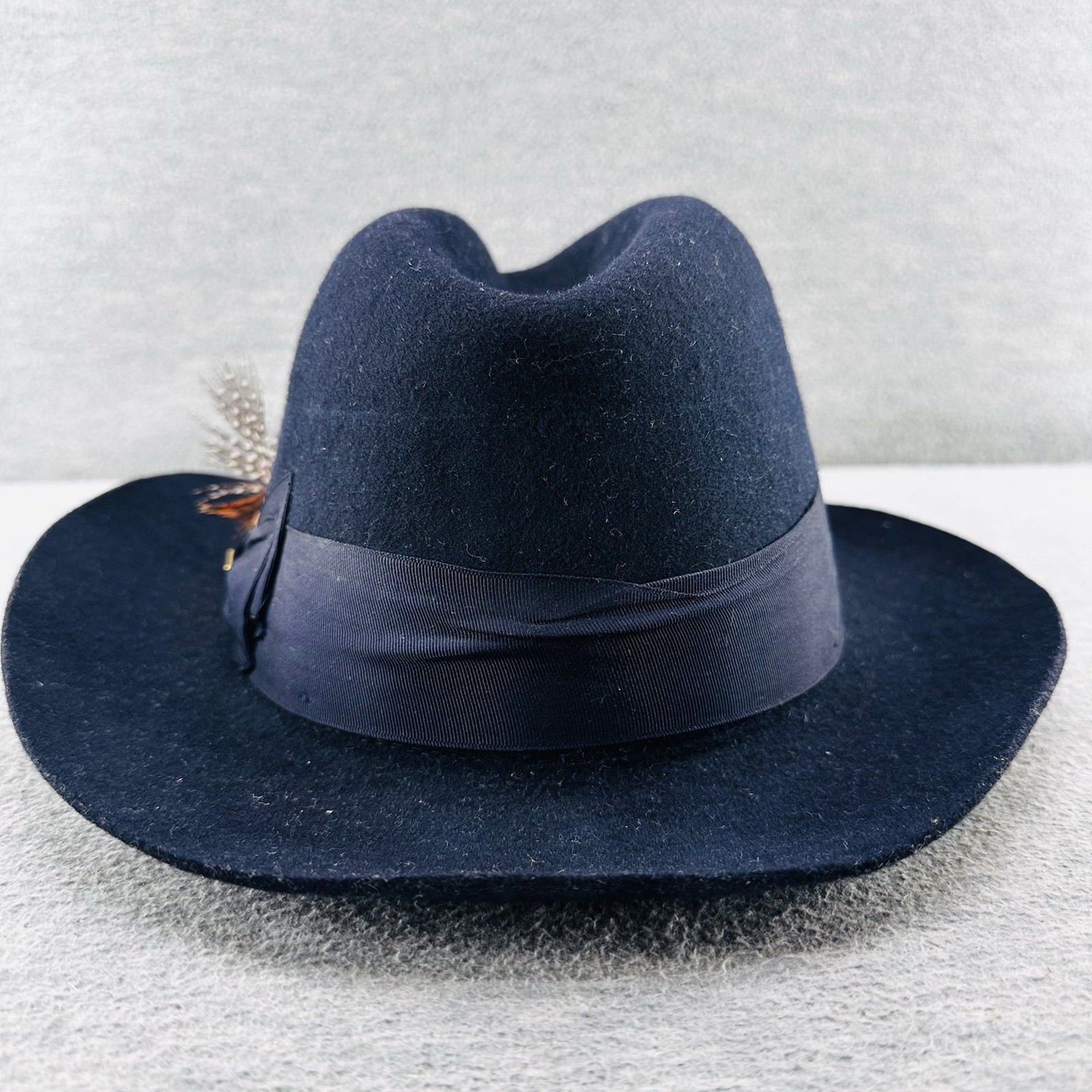 COMES AS IT IS PICTURED, ONLY WHAT IS PICTURED IS BEING SOLD : DETAILS OF ITEM: - STACY ADAMS - Blue with Blue Band and Feather Wool Large Fedora Hat, COMES AS IT IS PICTURED, INTERIOR RIM HAS SOME BAND FADING SEE PICTURES. COMES FROM AN ESTATE SALE WAS STORED AWAY FOR SOME TIME - MAY HAVE SOME COSMETIC SCRAPES, PLEASE SEE THE PICUTRES INCLUDED. NO RETURN ACCEPTED AFTER 14 DAYS OF RECEIPT. The original shipping cost is NONREFUNDABLE. PLEASE CONTACT FOR ANY QUESTION YOU MAY HAVE. THANK YOU FOR SHOPPING PLEASE COME AGAIN
