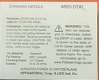 Brand new in box Pfanstiehl 4820-D7AL precision diamond needle stylus for Stanton cartridges. Manufactured in Switzerland. REPLACES THE FOLLOWING NEEDLES: STANTON D5100EE, STANTON D50 SERIES, STANTON D1507 SERIES, STANTON D5100 SERIES, D5200 SERIES,STANTON D5107 SERIES, 820-DE, 4820-DE, 820-D7, 820-D7AL. ALSO REPLACES PICKERING PD07C AND ALL OTHER PICKERING V15, NP/AC NEEDLES. USED IN THE FOLLOWING CARTRIDGES: STANTON 500 BROADCAST SERIES: STANTON 500A, 820. STANTON 500A, STANTON 500 MKII, STANTON 500AL, STANTON 500EL, STANTON 500E, STANTON 500E, 500.v3, CRAZE. FITS ALL STANTON 500 BROADCAST SERIES AND PICKERING V15 CARTRIDGES. .7 MIL STEREO DIAMOND TIP PLAYS 33 AND 45 RPM. 3 TO 7 GRAMS FORCE. 820 THIS SALE IS FOR 1EA. NEW IN BOX NEEDLE. Need help? Attach a picture of your old needle to an ebay message and i will find your new needle. Search my store for your needle, cartridge or other turntable accessories. Email me for help. Delivery confirmation in the United States is included in the shipping price. The confirmation number will be sent to the buyer when the item/items ship, usually within 24 hours. Check out my other items !