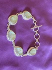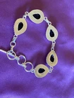 STERLING SILVER 925 7 1/2 INCH BRACELET WITH (5) TRIPLET PEAR CUT MULTICOLOR OPALS. BRACELET WEIGHS 20.4 GRAMS INCLUDING THE STONES AND IS STAMPED 925. EACH LINK IS 15MM WIDE.