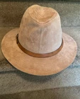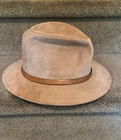 STETSON FEDORA HAT BEIGE GENUINE SUEDE UNISEX SIZE SMALL (21 1/2" TO 21 7/8") MADE IN USA EXCELLENT SHAPE