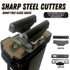 HIGH SPEED POWERFUL MOTOR, LITHIUM-ION BATTERY & LCD DISPLAY Driven by approximately 7000 RPM CPR Motor, powerful and durable making it last long and cut hair fast and efficiently. Besides a powerful motor, the shaver contains a Long-Lasting Lithium-ion Battery for 120 Minutes of Continued use after being fully Charged. 5 Minute Quick Charge is also an option when on a time crunch. The Adapter with input 100-240v is applicable to worldwide usage. Our LCD Screen will let you know when battery needs to be charged. HYPOALLERGENIC FOILS, CUTTERS & ALOE STRIP Achieve the close/smooth cut you require With 2 Hypoallergenic foils and cutter sets; SRF45 (Made in Netherlands) & SRF50 (Made in Japan). You can replace the Aloe Vera Moisturizing Strip in the middle SFA50, which provides smooth comfort to your skin. (12% Aloe Vera Oil; 6% Vitamin E; 15% Polystyrene; 50% Polyethylene Glycol; 17% Others). T-Fader is used to Shave the Mustache, Beard, face or head. For best results it's Recommended to cut your hair down to a Zero with a T-Shaper Trimmer before using the Electric Shaver. T-FADER PERKS T-FADERS' on/off button also serves as a travel lock; simply hold for 3 seconds and you're shaver wont turn on or waste battery when in your luggage. An automatic 15 minute shut off time is also provided to prevent blades from overheating and burning skin. The LCD display will flash with a cleaning reminder as it has rotation clog protection. WASHABLE ELECTRIC SHAVER IPX6 Keep your Foil Shaver Clean and Well maintained with the IPX6 Waterproof technology. Dust off your blades with the included cleaning brush and then run the Cutters under Water, in a bowl with cleaning solution or simple soap and water. Cleaning made easy and convenient. Along with the T-Fader; you'll receive 1 Cleaning Brush, USB Cable (1.5M), Charging Stand, Wall Adapter, Foil Guard & User Manual. T-FADER SRF45 SRF50 CRUNCH FOIL SHAVER CRUNCH LITE FOIL SHAVER SOLO FOIL SHAVER FEATURES Cord/Cordless, Rechargeable Li-ion Battery, iPX6 Waterproof, Close Cut, Smart Digital Display, Professional Foil w/ Cutter and Aloe Strip, 3 Second Child-Lock, Rotation Clogging protection, Cleaning Reminder, 5-Min Quick Charge Japanese Made Cutter Blade (Sold Separately) Original Cutters/Blades (Included) Cord/Cordless, Rechargeable, WET/DRY, Super Close Cut, Digital LCD Display, Light-Weight, Professional Cutters Cord/Cordless, Rechargeable, Close Cut, Digital LCD Display, Light-Weight, Professional Cutters Cordless, Safety Lock feature, USB C Charging, Anti Allergy Foil, Non Slip design, Lithium Battery, LED Battery Indicator, Long Lasting Motor, Strong & Sturdy WEIGHT 5.7 oz 0.77 oz 0.77 oz 6.6 OZ 5 OZ 3 OZ INSIDE THE BOX Shaver, Cleaning Brush, Usb Cable (1.5M), Charger Stand, USB Adaptor, Foil Guard, User Manual Stork Foil Made In Japan Stork Foil Made In Netherlands Crunch Shaver, 3x Cleaning Brush's, 1M USB Charger, 1.5M UL charger, Charger Stand, Foil Guard, user manual, Hard Travel Case Crunch Lite Shaver, Cleaning Brush, 1M USB Charger, 1.5M UL charger, Foil Guard, user manual, Velvet Travel Bag Cleaning Brush, Travel Bag , Protective Cover, User Manual RUN TIME 120 MINUTES 6 MONTHS 6 MONTHS 150 MINUTES 60 MINUTES 150 MINUTES MOTOR 7000 RPM CPR Motor 7500 RPM DC Motor 7800 RPM DC Motor 7800 RPM DC MOTOR BLADES SRF50 (included), SRF45 & SFA50 (Sold Separately) SOLD SEPERATELY INCLUDED SB62, SB63 SB55 SB11