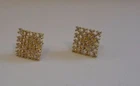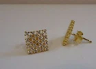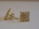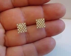 925 STERLING SILVER CHECKERED DESIGN STUD EARRINGS WITH .75 CARATS OF MAN MADE DIAMONDS..14K YELLOW GOLD NICKLE FREE PLATED..TOTAL WEIGHT 2.1 GRAMS.... DIMENSION 9MM BY 9MM .... VERY UNIQUE DESIGN THAT HAS IMMACULATE FINISH AND SUBURB WORKMANSHIP.. ACP00079GP ... RETAILS OVER $ 195.00...... AMAZING SAVINGS GREAT VALENTINE GIFT!!!!!!