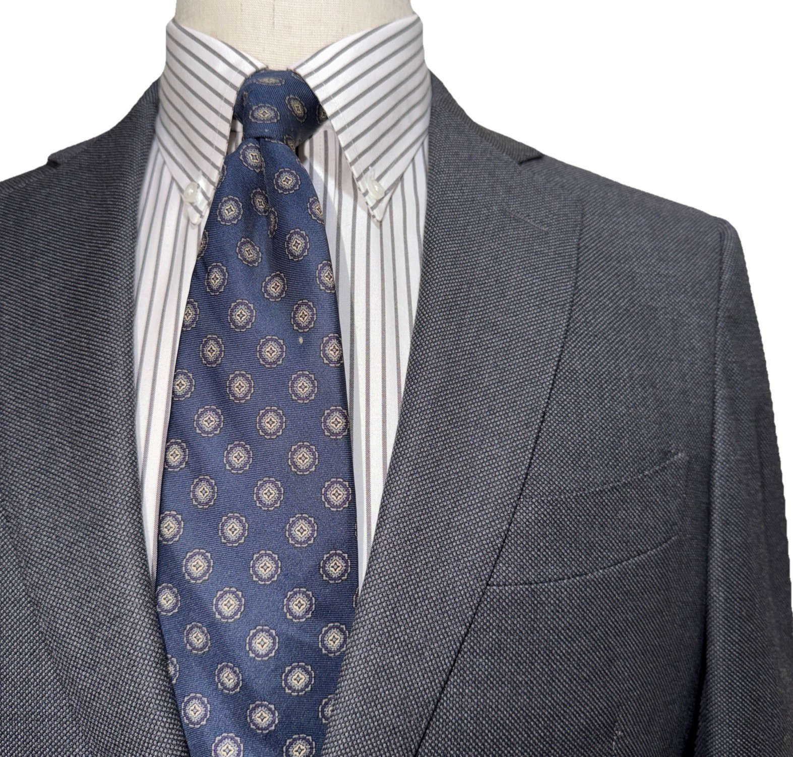 An amazing jacket at a great price! I was looking for something more interesting than the standard navy blue double-breasted jacket, and the jacket I purchased is an amazing find. The seller carefully and accurately described the minimal defects. It was packed with care and arrived in a timely fashion. An A+ seller!