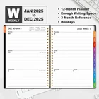 SUNEE 2025 Weekly and Monthly Planner - from January 2025 - December 2025, 6.4" x 8.3" Daily Agenda Planner with Monthly Tab, Flexible Cover, Note Pages, Pockets, Bookmark, Spiral Binding, Black 2025 Professional Planner - Cover from January 2025 to December 2025, Features 12 months of monthly and weekly pages, and also inclueds 3 extra monthly pages for October to December 2024 and 12-monthly tabs, with Lay-flat capability for all your planning and scheduling needs, and measures 6.4" x 8.3" Monthly View - Each date box provides ample writing space and includes the previous and next month's reference, ruled daily blocks with popular holidays, and Julian Dates for easy long-term project and appointment scheduling. Weekly View - 2-page weekly spread from Monday to Sunday provides generous lined writing space along with popular holidays and 3-month reference previews, allowing for easy appointment, note, and daily task management. Fight Ink-bleeding Thick Paper - Made with premium heavyweight paper to prevent ink bleed. The 6.4 x 8.3" sizes are perfect for on-the-go organization and scheduling. Sturdy notebooks withstand frequent transfers in and out of backpacks, briefcases, and cars. Additional Features - The weekly planner includes 2025-2027 calendars, year schedule for full year 2025, holiday lists, contact pages, notes pages, important dates, and US time zone map. Rainbow monthly tabs simplify navigation and add a stylish, playful element to the planner's aesthetic. 2025 Professional Planner - Cover from January 2025 to December 2025, Features 12 months of monthly and weekly pages, and also inclueds 3 extra monthly pages for October to December 2024 and 12-monthly tabs, with Lay-flat capability for all your planning and scheduling needs, and measures 6.4" x 8.3" Monthly View - Each date box provides ample writing space and includes the previous and next month's reference, ruled daily blocks with popular holidays, and Julian Dates for easy long-term project and appointment scheduling. Weekly View - 2-page weekly spread from Monday to Sunday provides generous lined writing space along with popular holidays and 3-month reference previews, allowing for easy appointment, note, and daily task management. Fight Ink-bleeding Thick Paper - Made with premium heavyweight paper to prevent ink bleed. The 6.4 x 8.3" sizes are perfect for on-the-go organization and scheduling. Sturdy notebooks withstand frequent transfers in and out of backpacks, briefcases, and cars. Additional Features - The weekly planner includes 2025-2027 calendars, year schedule for full year 2025, holiday lists, contact pages, notes pages, important dates, and US time zone map. Rainbow monthly tabs simplify navigation and add a stylish, playful element to the planner's aesthetic. Shipping from the USA All of our products are shipped from the USA, ensuring quick delivery to your destination. Payment We offer the following payment methods: PayPal, credit card, bank transfer, and eBay's secure payment system. Free Shipping & Free Returns Shipping within the USA is FREE. Additionally, any return is absolutely free for you. Risk-Free Purchase You have the option to return an item within 30 days without any justification. We cover the return shipping costs! Fast Shipping We ship immediately upon receipt of payment. Generally, the package is delivered within 2-3 days in the USA. If it takes longer, we will contact you. Quality and Costs Made in Europe, USA, China No customs fees or additional charges Total satisfaction guarantee Invoice with declared VAT available upon request in .pdf format Feedback Your feedback is very important to us. After you pay for your purchase, you will automatically receive positive feedback from us.