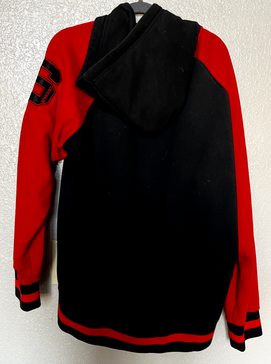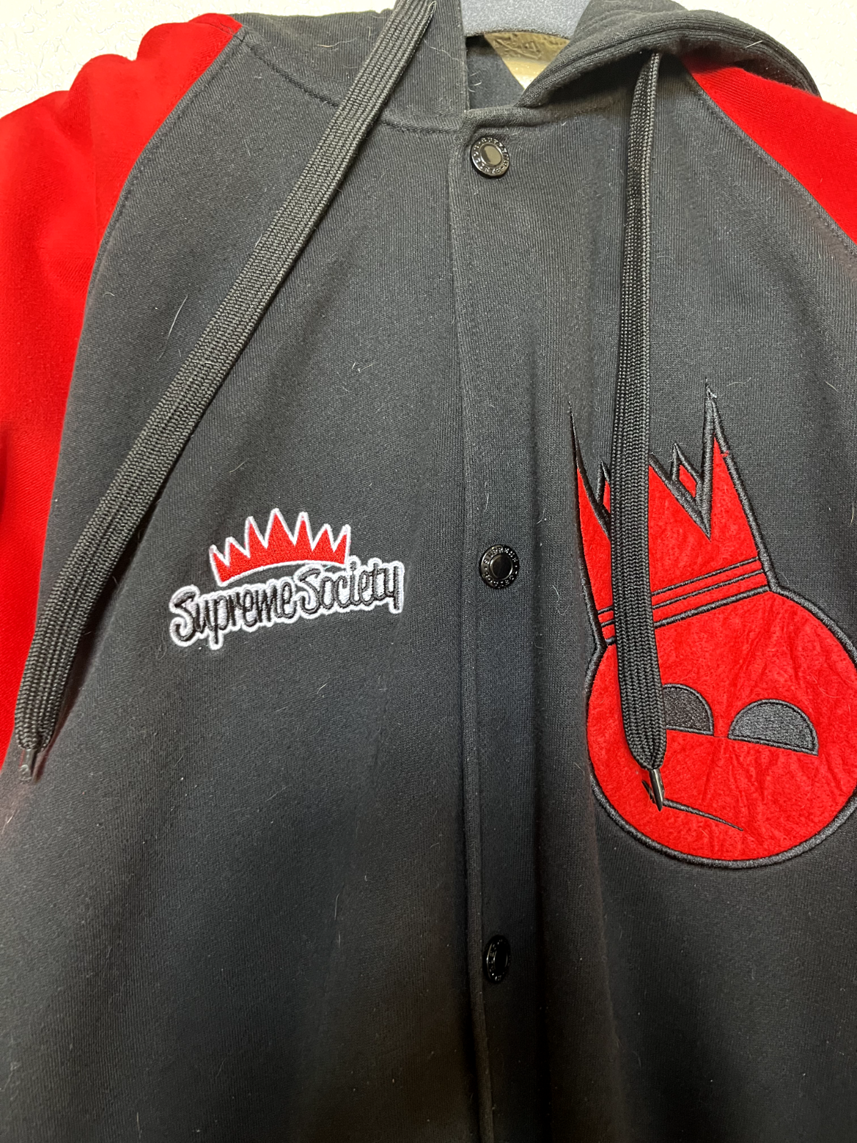 Elevate your casual wardrobe with the Supreme Society Men's Varsity Jacket in a striking red and black two-tone pattern. This jacket, crafted from a comfortable blend of cotton and polyester, ensures you stay cozy without sacrificing style. Designed for a regular fit, it features a classic hood, convenient pockets, and is equipped with snap closures that add a touch of vintage flair to your everyday look. Whether you're out for a casual stroll or enjoying the weekend, this jacket is perfect for the fall, spring, and winter seasons. Its durable fabric blend allows for easy care with machine washing, making it a practical addition to your outerwear collection. The Supreme Society Jacket embodies a classic outdoor theme, bringing both function and fashion to your ensemble.