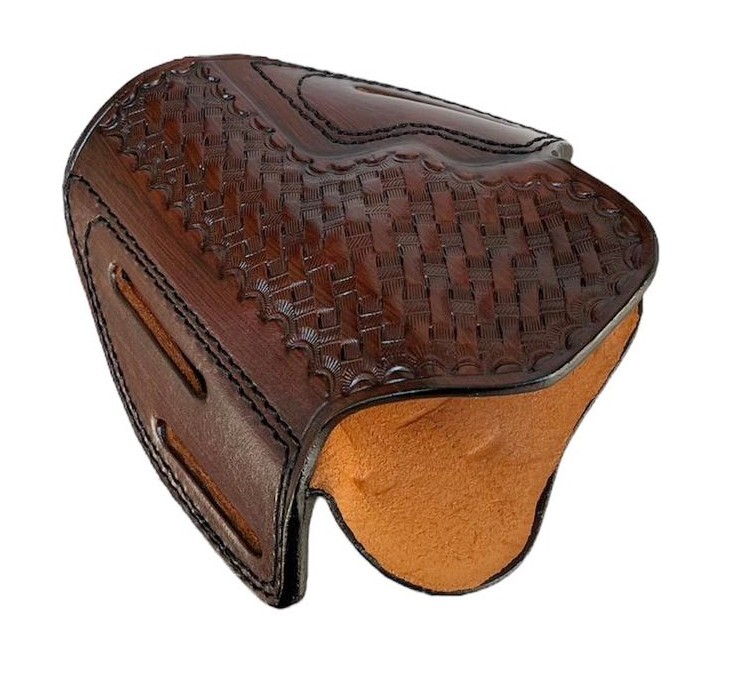 Product Name: Leather Gun Holster - Compatible with S&W Model 686, 60, 10, 19. 637 This handmade leather gun holster is crafted with precision to perfectly fit S&W Model 686, 60, 10, 19 firearm models. The product is meticulously manufactured using high-quality 3mm thick cowhide leather. Features: The leather is odorless and smooth, providing superior comfort for the user. The hand-tooled basket weave pattern adds an aesthetic touch to the holster. Standard design for right-hand use; for left-hand usage, please contact us after placing your order. Precision-crafted to prevent any unnecessary movement inside the holster, ensuring secure carrying. The built-in safety lock provides a secure means of carrying your firearm. Advantages: Handmade unique design ensures each holster is one-of-a-kind. Full compatibility with S&W Model 686, 60, 10, 19 . Quality materials and craftsmanship for long-lasting use. This leather gun holster combines an elegantly crafted with a custom design, offering both a secure and stylish carrying solution. The holster, with its unique design and meticulous craftsmanship, is tailored for a safe and comfortable carrying experience. Whether you prioritize safety or aesthetics, this holster delivers on both fronts. The standard design caters to right-handed users, while those seeking left-hand usage can customize their order. An ideal choice for secure and stylish firearm carrying.