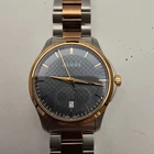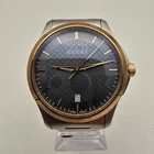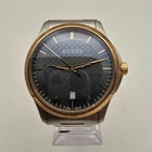 Superb & beautiful example of this Swiss Gucci 126.4 G-Timeless 2-Tone Rose Gold Plated Quartz Mens watch with Gucci G Designer Dial & Date Indicator. Very good condition for age. Please see pictures. Some minor discolouration of Rose Gold Plating on Bezel & Bracelet. Excellent aesthetic condition, no disfiguring marks or knocks. Minor wear only. Please see pictures. Full working condition. Comes with 5 extra Bracelet Links. Rare watch and a Collectors Item. Please note the watch does not come with original box & papers. Watch Only. Description below: [Brand] Gucci [Model] 126.4 G-Timeless [Condition] Very Good for age [Movement] Swiss Gucci Quartz [Dial] Gucci G Designer Dial [Crystal] Sapphire [Band Length Inner] will fit 17 cm wrist (approximate) - 5 extra links ~ 20 cm wrist [Case Size] without crown 40 mm × lug to lug 42 mm × thickness 8 mm (approximate) [Case Material] Rose Gold Plated/Stainless Steel [Band Material] Original Gucci 2-Tone Stainless Steel/Rose Gold Plated Bracelet [Crown] Original Gucci Rose Gold Crown [Functions] Quickset Date at 6 o'clock position [Accessories] 5 extra Bracelet Links Watch will be carefully shipped via registered mail with tracking, in protective shock-resistant packaging, fast and secure. Customs information: Any other costs or charges such as customs or import duties, customs clearance and handling may also apply during the shipment of your lot and will be charged to you by the involved party at a later stage if applicable.