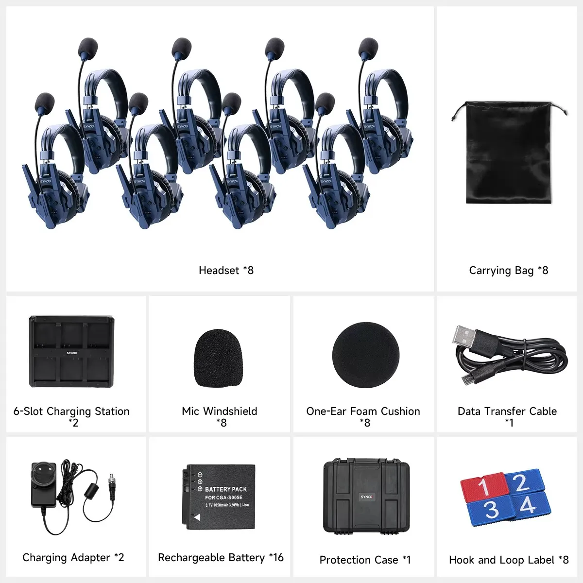 SYNCO XTalk Master 2.4GHz Wireless Headset Intercom System Full Duplex 4 Person Features: 【2.4G Wireless Intercom Headset】The wireless intercom headset is equipped with the convenient and stable 2.4G frequency. With this advanced technology, the wireless headset ensures top-notch stability and reliability, allowing you to communicate without interruption or interference. 【Stable Long Distance Team Communication】Stay effortlessly connected in teamwork communication with Xtalk wireless intercom headset, featuring an impressive range of R350m/1148ft(LOS), and φ700m/2296ft (LOS) while both remotes are connected to the master. No need to walk far to re-connect. This wireless headset is perfectly suited for prestigious occasions, such as church services, TV shows, filmmaking, live performances, and more. 【AEC Technology Noise Cancellation】Equipped with advanced AEC technology, the wireless headset with mic eliminates echoes, reverberation, and unwanted ambient noise, ensuring crystal-clear recognition of human voices even in noisy environments. One-Button Clarity design that allows you to activate the noise cancellation feature at the press of a button. 【3.5mm Real-Time Monitoring】Unleash the power of unique real-time monitoring and wired headset functionality in One! Seamlessly communicate with your team while monitoring audio from devices like cameras and camcorders, and no need for another headset. Perfect for field control personnel overcontroling the recording process, catering to the needs of on-set commanders, directors, supervisors, and more. 【Connect All Day With Rechargeable Batteries】Low-power design and powered by rechargeable and replaceable batteries, the wireless headset can work over 20H, while the 1050mAh replaceable battery feature allows you to swap in a fully charged backup. Stay connected and communicative throughout your day. 【Portability And Durability For On-The-Go】Crafted from lightweight ABS materials and smooth leather, the headset weighs just 188g (6oz) with the battery included, ensuring comfort during extended use. The upgraded over-ear leather cushion is designed to fit the ear, providing enhanced stability and comfort, making it ideal for challenging work environments. Specifications: Wireless Technology: Digital 2.4G Transmission Mode: Full-Duplex Operating Range: 350m (LOS) Frequency Band: 2.4G Latency: About 50ms Approximate RF Sensitivity:<-90dBm Radio Output Frequency: 20dBm Power: USB-C DC 5V Battery Capacity: 1050mAh Working Time: 15h Charging Time: About 2.5H Frequency Response: 150Hz~7KHz Signal-To-Noise Ratio: >65dB Distortion: <1% Microphone Type: Condenser Microphone Max Input Sound Pressure Level:>115dBSPL Output Sound Pressure Level: Typical 98+3dBSPL (at 94dBSPL 1KHz) 3.5mm Input: Available for Monitoring Temperature Range: 0℃-45℃(Working Status) -20℃-60℃(Storage Condition) Weight: About 188g (Battery Included) Xtalk Master X8 Packing List: 8 * Wireless Headsets 16 * Rechargeable Battery 8 * Mic Windscreen 8 * One-Ear Foam Cushions 2 * 6-Slot Charging Station 2 * Charging Adapter Cable 8 * Hook and Loop Label 8 * Storage Bag 1 * Protection Case Payment Delivery details Return Policy Feedback Contact us Payment 1. PayPal and Payoneer payment accepted. 2. Items will be shipped to your ebay address. Please make sure it is correct before you place an order. 3. We support low declaration according to your requirements to avoid huge customs duties. Delivery details 1. For EU/UK buyers, we will ship the item by Yun Express , usually it will take 6~12 business days and no customs duties if you select standard shipping from China 2. We will ship the item within handing time. Tracking information will be provided. 3. If you want to get it quickly,pls select expedited shipping from China then we can offer the DHL, FEDX , UPS service. 4. Please verify your address during checkout. We are not responsible for any wrong or un-deliverable addresses. 5. Import duties, taxes and charges are not included in the item price or shipping charges. These charges are the buyer's responsibility. Please check with your country's customs before making you purchase. Return Policy 1. If product is defective or damage upon arrival, or wrong product shipped, please contact us immediately. Returns accepted within 14 days of delivery date and item must be in original new condition, not worn or altered in any way with attached tags & wrap. Otherwise deal is final. Return shipping must be paid by buyer. 2. Please contact us first if you have any problems/questions/concerns. We will be happy to resolve any issues you may have in a cordial and friendly manner. 3. We appreciate your Postive Feedback, and will do the same in return. DO NOT leave negative feedback without first communication with us. Please allow max 3 business days for us to response. Feedback 1. Please do not forget to give us FIVE STARS on all of the Detailed Seller Ratings.In the unlikely event you are not satisfied with the transaction, please contact us before you submit your evaluation. We believe that everything could be solved by communication. 2. In order to provide you the best service , please treat the transaction fairly. Feedback is simply what we pursue. Thanks for your understanding. 3. Please DO contact us first to get a better solution before you would leave a neutral or negative feedback.we will do our best to serve you.please do not worry if there has any problem. Negative feedback or neutral feedback can not solve any issue, if you have any question please fee free to contact us. we will try our best to help you. 4. We strive for 5-star service by stating upfront our policies, our shipping rate & shipping frequency. If you were pleased with this transaction, please respond with all 5 stars and positive feedback! If you are not pleased, simply let us know via e-mail rather than leave low score, and we will do our best to solve it. Contact us If you have any questions, p