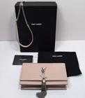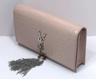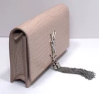 Preloved Saint Laurent Classic Monogram Tassel Crossbody Bag Crocodile Embossed Leather Small, Great cosmetic condition. Show signs of minor use. Overall, looks excellent. Please see the photos for the best condition. Comes with original box and dust bag, as pictured. Size: 7.5" W x 5"H x 1.5" D Handle drop: 11" Strap drop: 23.25"
