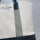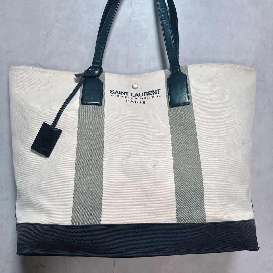 SAINT LAURENT East/West tote bag for shoulder carrying, used condition. The size is approximately 20.08 inches (top) and 15.75 inches (bottom) in width, 13.78 inches in height, and 2.36 inches in depth. It is a tote bag. The color is beige. The product includes only the main body. The material is canvas (leather handle). There is damage to the handle. I promise fast shipping via FedEx or DHL as soon as possible! Import duties, taxes and charges are not included in the item price or shipping charges. These charges are the buyer’s responsibility. These charges are normally collected by the delivering freight (shipping) company or when you pick the item up - do not confuse them for additional shipping charges.