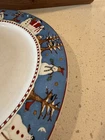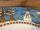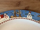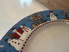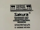 Add festive cheer to your dining table with this set of four Sakura dinner plates featuring a snowman pattern. Crafted from durable stoneware, these round plates measure 10.75 inches in diameter and are perfect for serving your favorite holiday meals. The plates are microwave and dishwasher safe, making them convenient for everyday use. The shiny finish and modern style of these plates make them a great addition to your kitchen collection. Manufactured in Indonesia in 1998, these plates are a perfect fit for the Christmas and winter occasion. Bring home the magic of the season with these snowman-themed dinner plates from Sakura. From a smoke-free home.