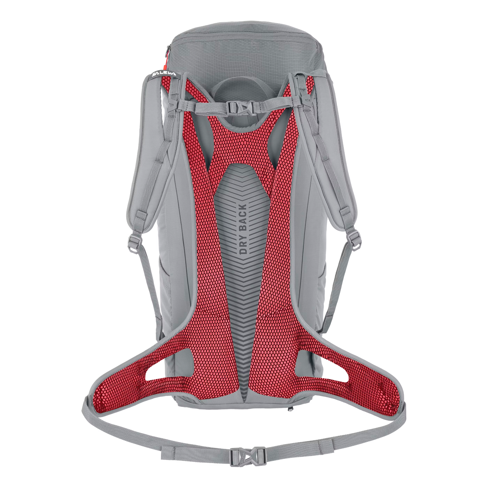 A women’s dependable, 20-litre ventilated alpine hiking and trekking pack with a Dry Back Air carrying system built for comfort on done-in-a-day mountain tours. This versatile 20-litre hiking and trekking backpack is ideal for done-in-a-day hikes. Dry Back Air Our cutting-edge Dry Back Air carrying system has a suspended back panel for enhanced breathabilty and lightness combined with good load distribution. Load control straps help provide further adjustment for an efficient carry by providing stability over challenging terrain. Engineered with dedicated airflow technology and a 25% reduced body contact surface, the Alp Mate allows greater ventilation to reduce sweating and keep your back dry. Built from robust but extremely lightweight fabrics to help you conserve energy, this pack also benefits from the wrapping carry comfort provided by its Split Shoulder Straps, ergonomic hipbelt and women-specific fit. The Alp Mate has both a top-loading opening with a lid, and a linear front zip for rapid access to the contents. With an integrated rain cover, numerous pockets, multiple attachment options and preparation for a hydration system. The Alp Mate 20L is the ideal pack for shorter alpine hikes.