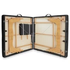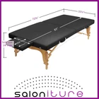 Color Black Brand Saloniture Size 1 Count (Pack of 1) Item Depth 33 inches Item dimensions L x W x H 72 x 33 x 24 inches About this item Premium comfort: Table features deluxe cushioning, providing the ultimate comfort for your clients. The table top is composed of a plush 2" thick layer of high-density foam. Strong, sturdy support: Precision crafted of premium-grade materials, this professional stretching physical therapy massage table features a hardwood frame and durable steel support cables, designed to accommodate a maximum weight capacity up 450 pounds. The headrest/table extender features a premium composite support, resistant to bending and warping. The table legs feature secure, non-slip, non-marring feet, which prevent sliding during massage as well as provide floor protection. Convenient & portable: Lightweight yet sturdy construction in a streamlined fold-and-carry design makes setup and breakdown a breeze. Weighing just 37 pounds, the table's compact design can even accommodate all accessories to be stored inside the table if desired. It locks securely with two professional chrome clasps, and features double handles for easy travel. Includes a durable nylon carrying case with an adjustable shoulder strap and side pocket to hold oils and supplies. Oil & water-proof: The entire table cover is draped in a luxurious PU synthetic leather, a highly durable, soft, and vegan-friendly material that is not only easy to clean, but has no offensive smell like other synthetic materials. It is also oil and water-proof to resist stains. Versatile: 72.75" long (without headrest) x 33.5" wide, headrest is 10.5" long x 14" wide (Adjustable).