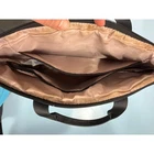 Samsonite laptop bag crafted from durable brown nylon with elegant gold-tone hardware. This versatile briefcase features a slim profile with a zippered front pocket and a luggage sleeve on the back for easy travel. The interior is lined in a contrasting light mauve fabric and includes multiple organizational compartments for a laptop and accessories. It offers flexible carrying options with double top handles and a removable, adjustable crossbody strap. Note that there is some visible staining on the interior lining as shown in the photos. Measurements: • Width: 15" • Height: 11" • Depth: 1"
