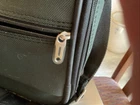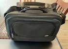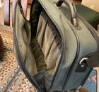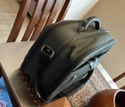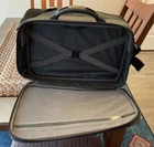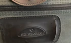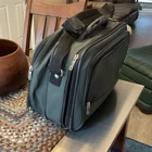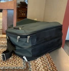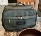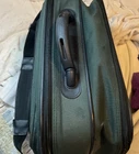 Nice pre owned Green Canvas Carry on tote. Will fit above seat in overhead storage Nice strap quality Perfect for overnight trip 18 L 12 H 7 W No cuts or tears look like two small spots on top- you really can’t see them, but I did a close up in the last picture This is a little dusty and probably needs a good brushing if you want it to look perfect I wouldn’t brother, but…you can run a roller over it to remove some dust from storage