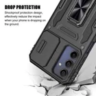 SYONER for Samsung Galaxy A15 5G Case, Shockproof Phone Case & Sliding Camera Cover & Ring Holder Kickstand with Screen Protector for Samsung Galaxy A15 5G (6.5", 2024) [Black] ✓ Free 30 Day Returns ✓ Free Shipping Compatible with "Galaxy A15 5G" which has 6.5 inches display screen. Material: Hard premium polycarbonate (PC) material [outer layer] and hard TPU material [inner layer] Ring Holder Kickstand: Built in 360° rotatable ring fits comfortably on your finger to provide added security when holding the phone. It can also be used as a kickstand for hands-free viewing of your phone in portrait or landscape mode, such as hands-free viewing of movies, videos, pictures, etc. Precisely cut openings to allow full access to user interface, camera lens, headphone jack, speakerphone and microphone Screen Protector: Tempered glass screen protector is included in the package. It is HD clear scratch resistant tempered glass [9H Hardness]. Features: 1. Material: TPU & Polycarbonate(PC). 2. The 2 piece shock absorbent frame is made of a hard outer PC (polycarbonate) shell and inner TPU case supplying double protection from scratches, bumps, dirt, grease, and fingerprints. 3. Beautifully designed in a choice of vibrant colors with detailed trim to perfectly compliment your phone's original look, keeping your own personal style. 4. Snap on/off design allows for easy removal for changes and cleaning. 5. Precise openings for all buttons and ports keep your phone fully functional when covered. 6. Built in 360° rotatable ring holder fits comfortably on your finger to provide added security when holding the phone. It can also be used as a kickstand for hands-free viewing of your phone in portrait or landscape mode, such as hands-free viewing of movies, videos, pictures, etc. Compatible with: For Samsung Galaxy A15 5G For Samsung SM-A156B For Samsung SM-A156B/DS For Samsung SM-A156P For Samsung SM-A156P/DS For Samsung SM-A156U For Samsung SM-A156U1 For Samsung SM-A156U1/DS For Samsung SM-A156W For Samsung SM-A156P/N For Samsung SM-A156P/DSN For Samsung SM-S156VL For Samsung SM-A156M For Samsung SM-A156E For Samsung SM-A156E/DSN Package Includes 1 x SYONER Case Cover 1 x Tempered Glass Screen Protector