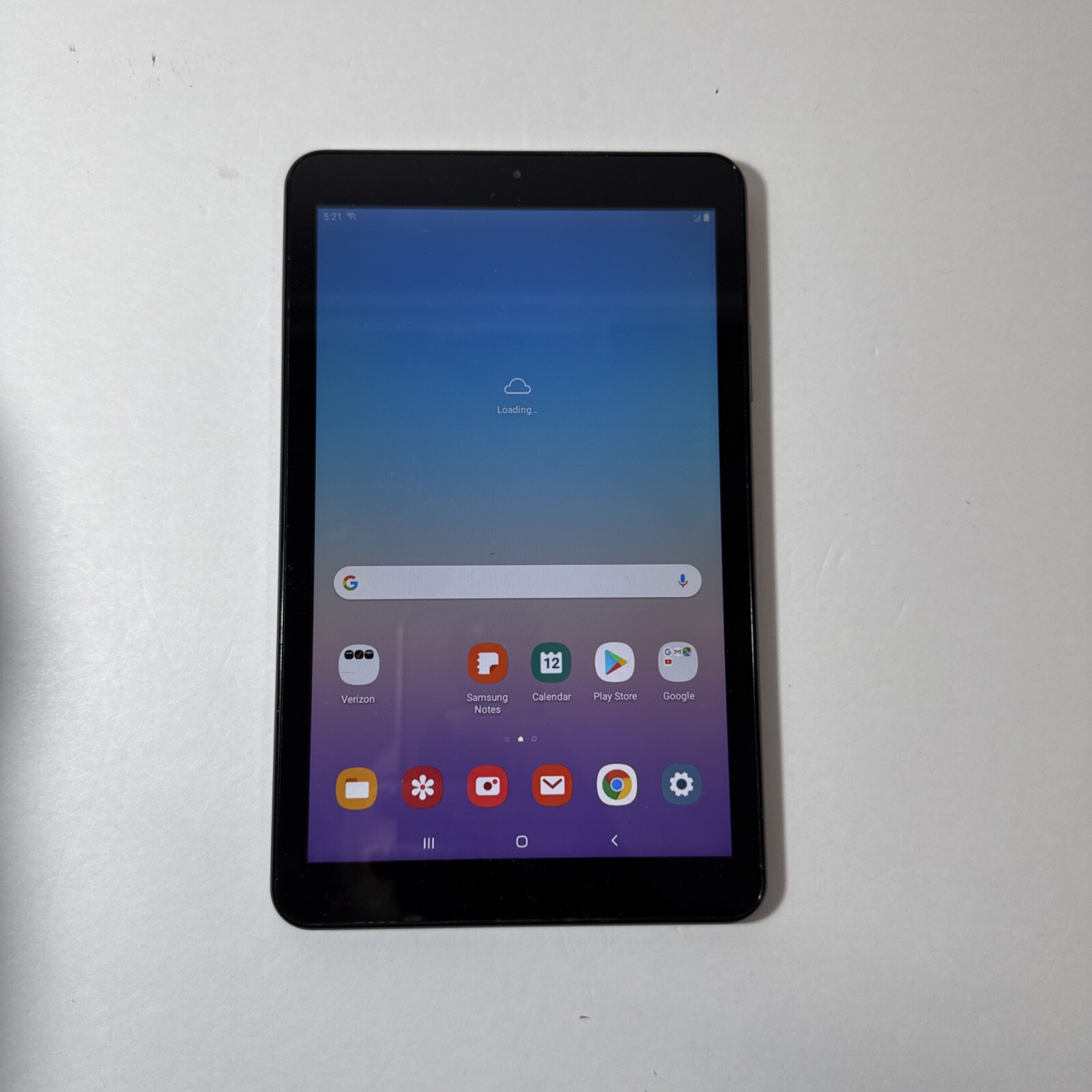 Samsung Galaxy Tab A 8" SM-T387V is a black tablet with 1.5 GB RAM, 32 GB storage capacity, and 8-inch screen size. It operates on Android OS and supports Wi-Fi + 4G internet connectivity through Verizon network. The tablet has Bluetooth, headphone jack, built-in front and rear cameras, Micro SD card slot, and Micro-USB connectivity. It is part of the Samsung Galaxy Tab A series and has a maximum resolution of 1280 x 800.