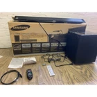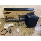 Condition: NEW OPEN BOX Model: HT-WS1 Product Dimensions: 39.4 x 4.6 x 2.5" (1000 x 116.8 x 63.5mm) Manufacturers Description: With an exceptional multi-channel surround sound reproduction and an unobtrusive single-speaker design, the Samsung HT-WS1 Soundbar Home Theater System (Gray) will take your home theater experience to new heights. With 260W of 2.1-channel virtual surround, this system eliminates the need to install multiple speakers in your home theater set-up, by combining advanced signal processing and acoustical geometry. Its Crystal Surround Air Track active speaker system features 80W x 2-channels, Dolby Digital, DTS, and SFE decoders, and an optical digital audio input. Additionally, the 100W active subwoofer features 2.4GHz high-frequency wireless technology capable of receiving crystal clear audio from within a 32' range.