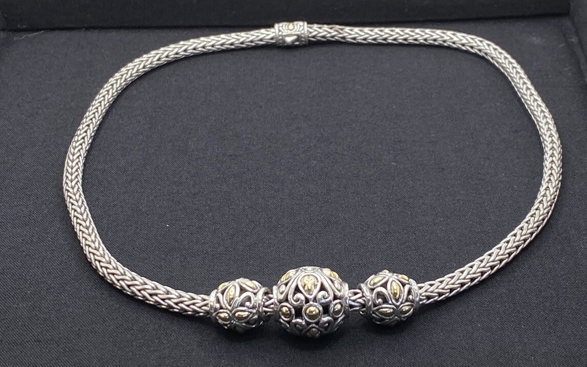 Elevate your jewelry collection with this exquisite Samuel Behnam BJC necklace. Crafted from 925 silver and 18K gold, this necklace boasts a luxurious chain style with a length of 16 inches. The piece features a stunning combination of fine jewelry materials, including silver and gold, that complement each other beautifully.