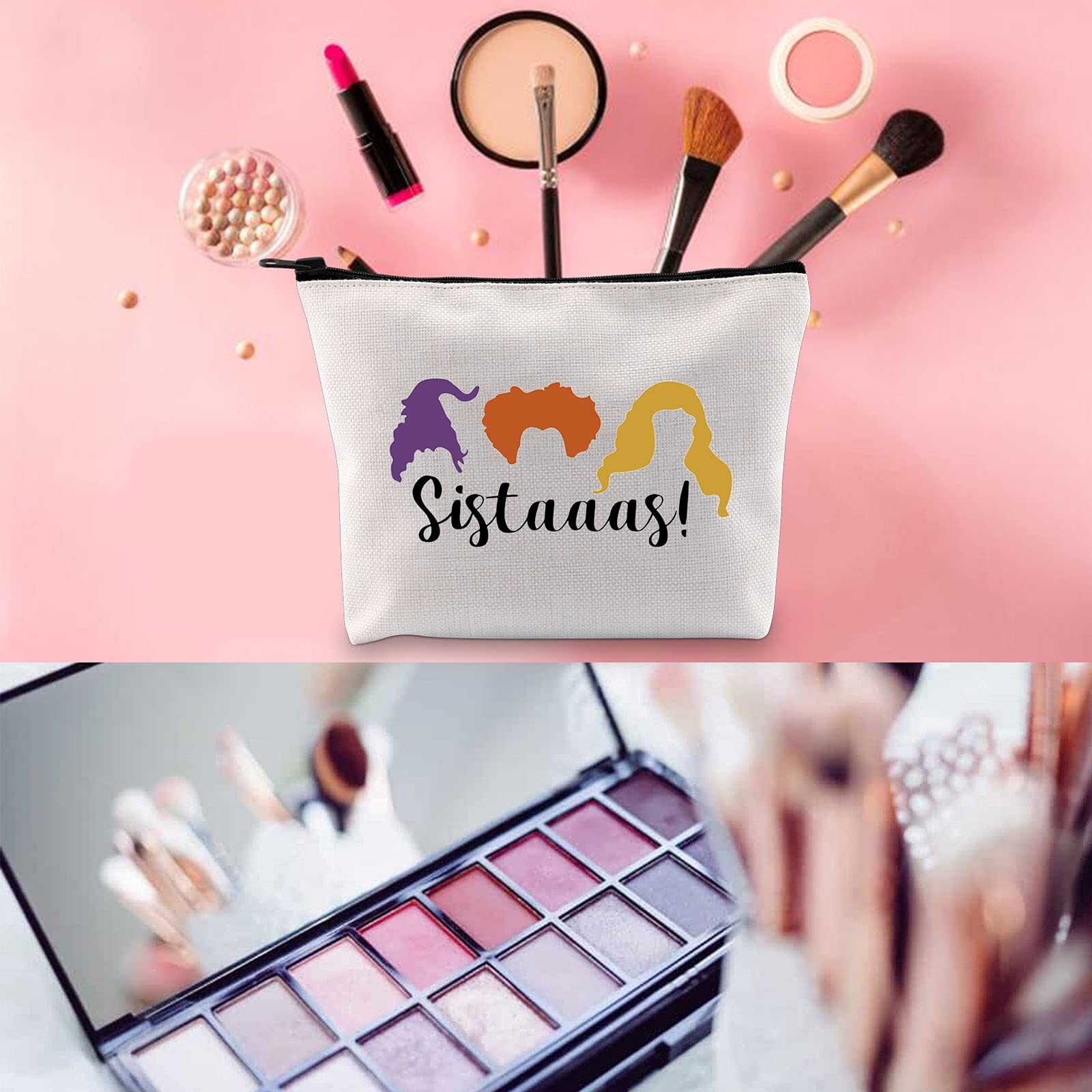 WCGXKO Sistaaas Sanderson Sisters Inspired Zipper Pouch Makeup Bag (Sistaaas) Product Details Color: Sistaaas Brand: WCGXKO UPC: 785711988976 EAN: 0785711988976 MPN: Does not apply Product Dimensions: 9.06 x 6.5 x 6.5 inches Item Weight: 0.317 ounces Department: womens Country of Origin: China MULTIFUNCTIONAL COSMETICS BAG: These makeup bags not only can storage your cosmetics, but also jewelry, electronic accessories, camera, essential oil, toiletries, shaving kit, valuable objects and so on. PRODUCT SIZE: 9"L *7.2"H, size suitable for makeup and stationery. This cute and fun graphic little bag can be used as makeup bag, travel case, pencil case,purse, pouch, organizer.This is a perfect gift to share with your friends and family. PREMIUM MATERIAL: Made of high-quality canvas material with marble print, these makeup bags is scratch-resistant, durable and water-resistant, the sturdy gold zipper can keep your beauty products in place. OPENING DESIGN: easy to store small items, makeup brush, etc., to make your daily make-up, cream, lipstick, perfume and other beauty things organized and protected. An internal zipper pocket that facilitates storage of your money, credit cards, jewels or other personal items. STORAGE SPACE: This make up bag is big enough to hold your day-to-day makeup, like lipstick, lip gloss, makeup brushes, eyeshadow and so on. Keeps all your stuff nice and organized so you don't have to go looking for everything all the time. And this marble makeup bag is portable and lightweight, easy to carry. You can bring your cosmetics to anywhere.