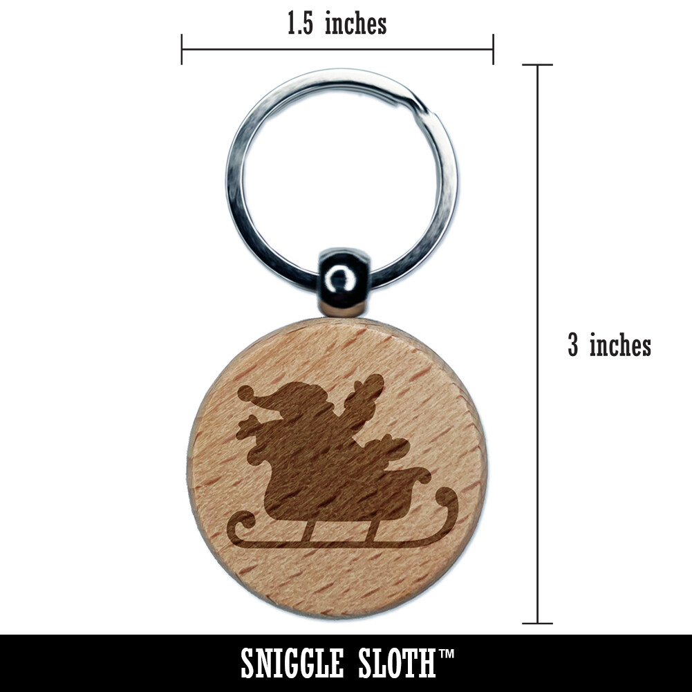 Santa Sleigh Silhouette Engraved Wooden Christmas Keychain Charm