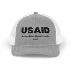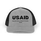 This Sarcastic USAID Snapback Trucker Cap is the perfect patriotic accessory for DOGE and Trump supporters. Help Elon and Trump drain our political swamp and Make America Great Again. It adds a stylish touch to any outdoor outfit, giving off a patriotic vibe. It is a great gift idea for those who want to show their Americana fashion. Relevant for holidays like Independence Day and occasions like political rallies. Product features - Comfortable fit with a structured body and mid profile - Adjustable snap closure for the perfect fit - Embroidered design with a Brand sticker on the visor - 60% cotton, 40% polyester front and visor, 100% polyester mesh back - Sweatband for added comfort Care instructions - Use warm water and dish soap and clean spots off your hat. It's not necessary to soak the whole item. For hard to clean spots use a soft bristled brush.