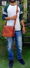 100% genuine goat leather messenger bag with a durable inner lining made of canvas. Designed to carry mini laptops, tab, documents or other personal belongings, etc. A genuine hand made product using chemical/dye-free leather. Natural oils and light have been used to obtain the style of the leather - chemical free! This bag features a wonderful unique and vintage look, designed to carry mini laptops, tab, documents, personal belongings. Perfect for the office, school or as a gift! Specifications:- Made from 100% genuine, strong, lightweight, durable goat leather, tanned without the use of chemicals Adjustable shoulder strap, full flap bag with magnet lock 2 big inner compartment for carrying files, tab's etc. 2 chain compartments for important documents/paperwork etc. Inner canvas lining Vintage leather wash Leather softens and darkens with use Handmade in India by experienced crafts people