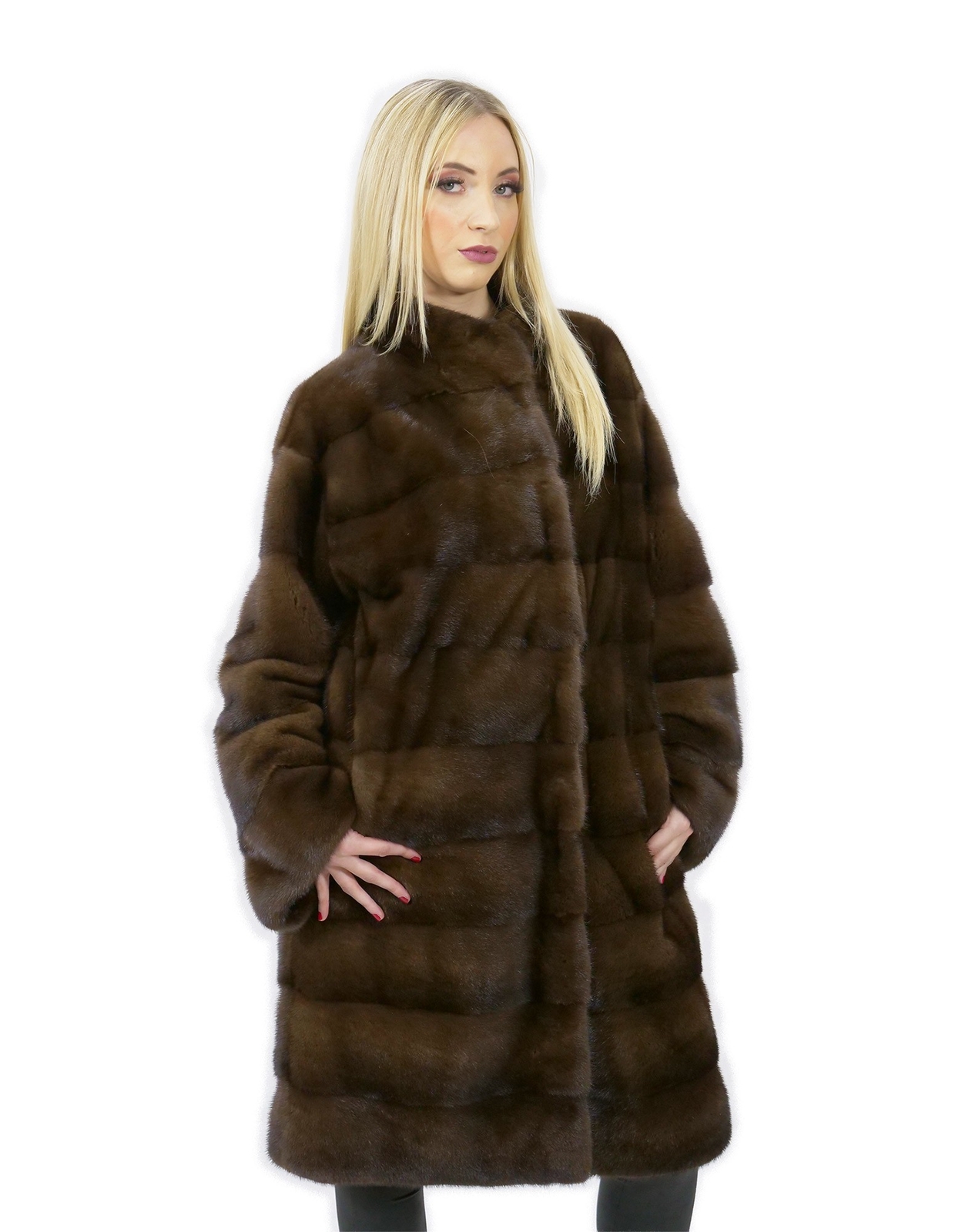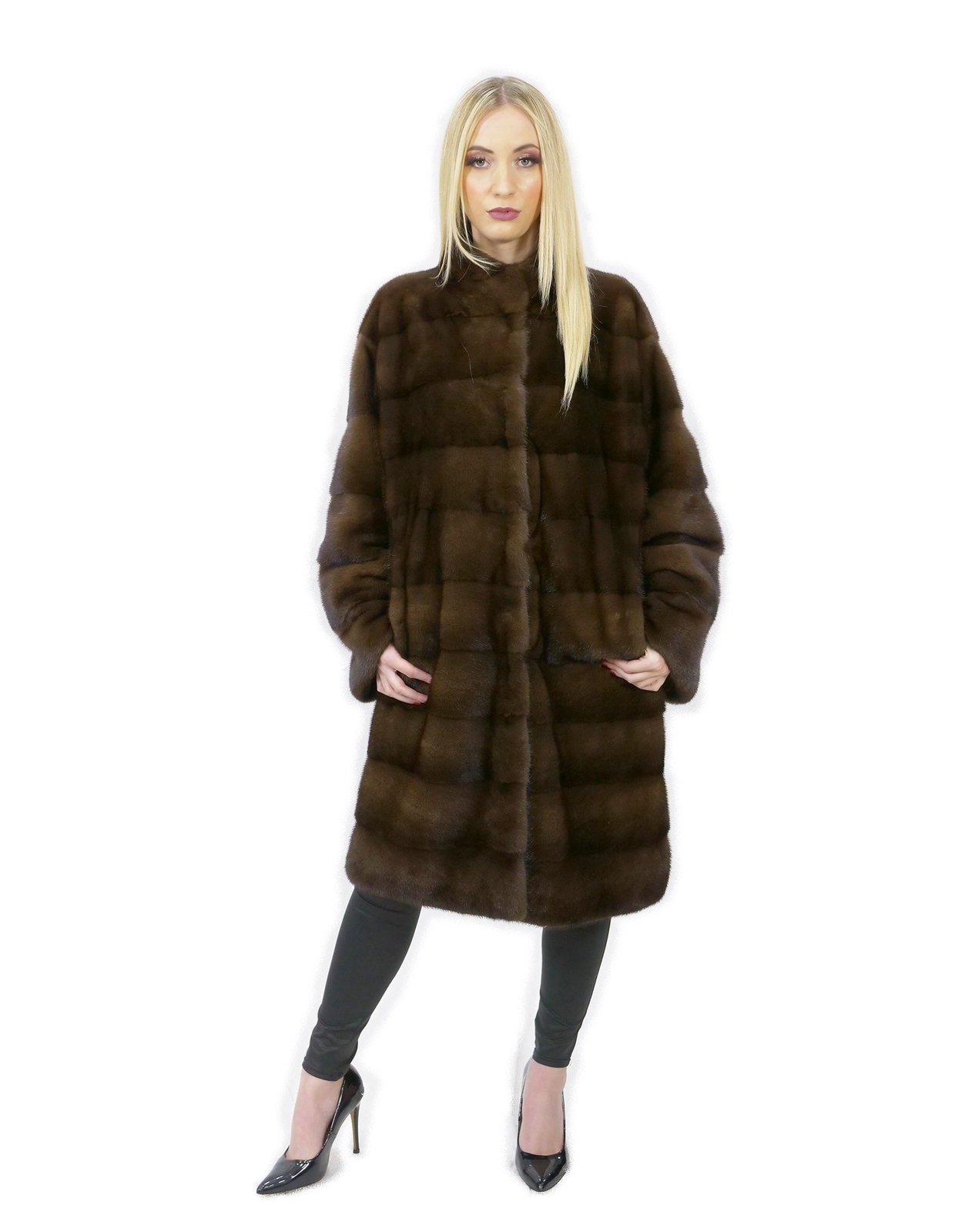 Scanbrown fur coat mink 46 horizontal pistachio neck 100 cm INTERNATIONAL SHIPPING Shipping all over the world MADE IN ITALY PAYMENTS ACCEPTED We accept payments via PayPal, Credit Card, European bank transfer DESCRIPTION Mink coat with whole skins in horizontal processing. Our mink furs are productions made in our workshops, therefore a unique and exclusive mink coat. The possibility of producing our furs of the highest quality allows us to make proposals at different prices with various occasions at low prices always available. Furthermore, our laboratories and our collaborations guarantee a mink fur of undisputed quality 100% made in Italy. The quality of female mink fur used for this is a mink fur coat with Kopenhagen fur branded skins. The mink fur coat comes in a gorgeous scanbrown color with a beautiful plunger collar, long sleeves, 100cm long and normal outside pockets. MEASURES Exact color - Scanbrown Size - 46 Garment - Coat 100 cm Height cm (H) - 100 Centimetri 39,4 Pollici Pelvis cm (B) - 124 Centimeters 48.8 Inches Breast Chest cm (C) - 112 Centimeters 44 inches Shoulder width cm (D) - 46 Centimeters 18.2 Inches Outer Sleeve Length cm (E) - 62 Centimeters 24.4 inches Inner Sleeve Length cm (F) - 46 Centimeters 18.2 Inches Waist cm (G) - 120 Centimeters 47.2 Inches Neck Height cm (H) - Pistagne Bottom Width cm (I) - 128 Centimeters 50.4 Inches Garment Size - 46 Color - Brown Item number - 7417 1 Padding - Brown CODE ARTICLE 00266581 Prestalia e-commerce solutions.