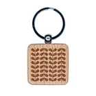 Scandinavian Leaf Stems Engraved Wood Square Keychain Tag Charm