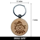 Scarecrow Head Fall Autumn Engraved Wood Round Keychain Tag Charm