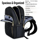 Large Capacity & Roomy Compartments Inside Compartments: 1 x Separate Laptop Pockets: Fits 15.6 Inch Laptops, Macbook, iPad and notebook 1 x Main Compartment: Keep daily stuff like binders,books,clothes etc. 1 x Back Anti-theft zipper pocket. 2 x Side Pocket. Keep for water bottle, cups, umbrella, other electronic devices and various items. 3 x Front Compartment: For phones, earphone,wallet, passport,keys, purse and easier to find. Specifications: Dimensions: 17.5" x 12.5" x 7.8" Weight: 1.6 LBS Fabric: water resistant and eco-friendly Polyester Warm Tips: This teen backpacks for girls is waterproof and can be used in fine rainy days. Please do not expose it to heavy rain for a long time without any rain cover. Style: Casual, Travel, Sport, College Application: Daily Life √ Shopping √ Potluck dinner √ Camping √ Leisure Travel √ Weekender √ Business trip √ Luggage Straps:No need to carry the backpack on your back, less burden when on the go. √ College universidad √ Nursing clinical √ There are a variety of colors for you to choose from, easy to match your outfit to show your personality Work/business backpack (work bag) √ Teachers - textbooks, flipchart, A4 folders √ Staff - clipboard, file pocket, lunch box √ Veterinarian - work clothes, toolbox √ Artist - color pens, camera, sketchbook Large capacity backpack for everyday life, perfect for business trips, college and outdoor activities in everyday life. The fashionable quilted design and classic color variations go perfectly with your daily attire and also make the best Christmas gift and birthday gift for ladies, women. Multi-Compartment Laptop backpack:17.5”H x 12.5”L x 7.8”W. Weight only 1.6 lb and easy to carry, The school back pack for women has 7 compartments:Separate laptop compartmentoffer the optimal protection for your 15.6'' computer.Main compartment has roomy space to store your books, A4 folders, clothes or daily necessities. 3 front accessory pockets with 2 side pockets to store powerbank, iPad, earphones, pens, mouse, water bottle, umbrella or other daily accessories. Fashion & Durable: With its classic V-shaped embroidered stitching on the front, this backpacks for teen girls is stylish and sophisticated, and you can easily organize everything you need for everyday use. This girl backpack for high school has a high-end exterior and delicate gold-plated zippers, and a tear-resistant custom interior that is scratch-resistant and water-resistant. Comfortable & Functional:The ergonomic shoulder straps ease the burden on your back and shoulders and the top of the school backpack has a strong PU leather handle for easy carrying. A carefully woven luggage strap secures the travel backpack to the trolley of your luggage, making your journey more comfortable wherever you go. Easy Charge:With an inside charging cable and an outside USB port and there is a special pocket inside the laptop backpack to place the power bank (Note: power bank is not included) backpacks for women provide a very convenient way to charge your phone devices while walking or cycling. college backpack makes your trip and travel more convenient wherever you go. Multipurpose:Its elegant and chic appearance makes it a backpacks for girls 10-12, college backpack, casual mochilas, women backpack, book bag, a great choice for your hiking camping travel companion for all indoor and outdoor activities, it is also the perfect gift for the special women, family, and friends in your life.