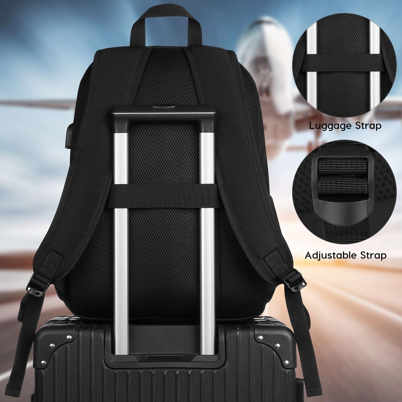 Classic and Stylish A lightweight, timeless style bookbag perfect for daily life. Bag's Size and Fit Guide 15.6 inch bookbag is ideal for people of height from 4ft to 6.2ft. 17.3 inch bookbag is ideal for people of height from 5ft to 6.4ft. Details Luggage Sleeve:Allows the schoolbag to fit on the suitcase, great for international travel or business trips. Waterproof Fabric:Unique 300d oxford waterproof fabric protects your clothes, books, personal items from rain. Pockets:Zipper pockets inside that are perfect for school and business. Computer Compartment:Equipped with velcro,ideal for 12", 13.3", 14", 15", 15.6" laptops. Tablet Compartment:Holds a 9.7" tablet. More Occasions:Bookbag,computer backpack,office backpack,notebook backpack, laptop backpack,daypack,business backpack,casual backpack,classic backpack. Package Include Backpack x 1 USB Cable x 1 【Size & Capacity】16.5 x 12.5 x 6 inches.The perfect size meets The Airline's Requirements.Padded laptop compartment fits 11",12",13.3",14",15",15.6" laptop.Tablet compartment fits a 9.7-inch tablet.Elastic velcro keeps your devices firmly in the compartment. 【Waterproof & Convenience】The fabric using high-density waterproof 300D Oxford fabric,luggage sleeve allows the lightweight backpack to fit on luggage/suitcase,slide over the luggage's upright handle tube for easier carrying. 【Padded & Breathable】The shoulder straps and back of the school bag are fully covered with padding, making it more comfortable to wear. It is an ideal choice for outdoor activities. 【Classic & Lightweight】Not too big and not too small, the classic backpack features one main compartment to hold your personal items. It is an ideal school supply for children, friends, and family.(Age:over 3 years old) 【Charging & Upgrade】The charging backpack features an external charging port and a built-in charging cable, providing you with a more convenient way to charge your electronic device while walking or cycling by connecting your own power bank. The interior is specially designed with a pocket to securely hold the power bank, ensuring that the charging cable remains connected even during bumps.(Power Bank is not included in the package.)