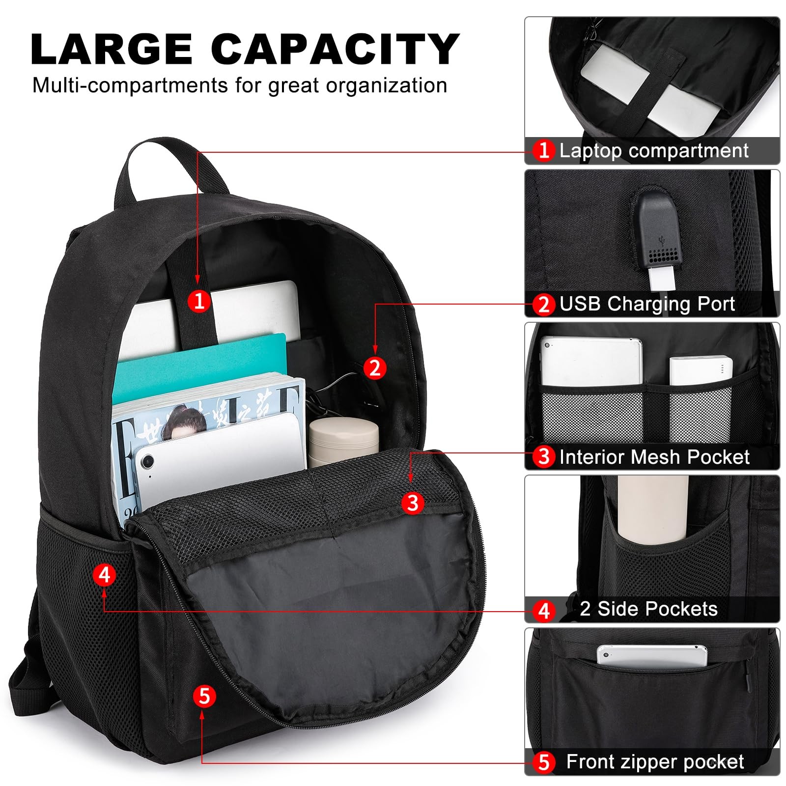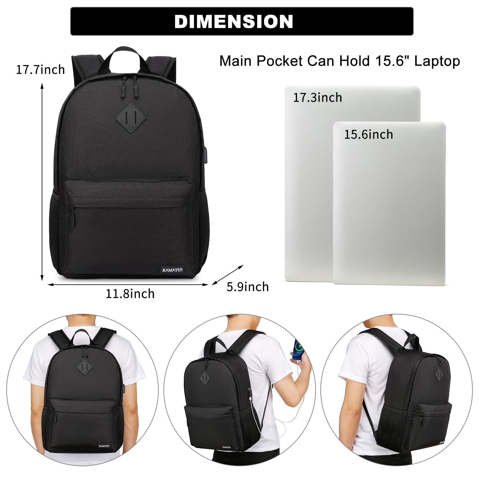 Product Description: Features for school Laptop Backpack: Daily travel and study work: The Backpack for College is a stylish and functional accessory designed specifically for men, teens boys, high school students, and college-goers. This sleek black backpack offers ample storage space to safely carry all your essentials while on the go. With a dedicated compartment for a 15.6-inch laptop, this backpack ensures that your valuable device stays protected from scratches and bumps. Device requirement: Featuring a USB charging port, this backpack allows you to conveniently charge your electronic devices while traveling or attending classes. Simply connect your power bank to the internal charging cable and you're ready to charge your smartphone, tablet, or other gadgets on the move. No more worrying about running out of battery! Crafted using durable materials: This backpack is built to last. The adjustable shoulder straps offer a comfortable fit, ensuring that you can carry your belongings without straining your shoulders or back. The backpack also features multiple pockets and compartments, providing organized storage for your textbooks, notebooks, pens, water bottles, and other essentials. Whether you're heading to class, library, gym, or traveling, this versatile backpack is the perfect companion. Its sleek design and black color make it suitable for any occasion or outfit. Invest in the Backpack for College and experience convenience, style, and durability all in one! Spacious School Backpack: Designed for students, this backpack for school features multiple compartments to organize textbooks, laptops, and supplies. Everything stays accessible—perfect for teen backpack users needing quick access during busy school days. Secure 15.6" Laptop Protection: Your laptop stays safe in this school backpack's padded compartment. Shock-absorbent padding shields devices from bumps—ideal for boys backpack owners carrying tech to class or campus. Built to Last for Teens: Crafted with tear-resistant fabric and reinforced stitching, this teen backpack survives rough handling. A durable backpack for school that withstands cramming books and daily teen adventures. USB Charging + Anti-Theft: Stay connected: This boys backpack includes a USB port for on-the-go charging. Hidden anti-theft pockets protect valuables—making it a smart school backpack for tech-savvy students. Comfort Meets Style: Ergonomic padded straps and breathable back panel make this backpack ideal for long days. Sleek yet functional—the ultimate teen backpack for school, travel, or hanging out with friends.