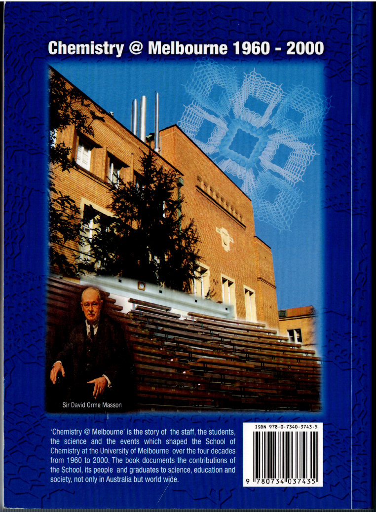 School of Chemistry at the University of Melbourne 1960-2000 ; by Valda McRae School of Chemistry at the University of Melbourne 1960-2000 ; by Valda McRae This copy is in VERY GOOD used condition overall. The cover has minimal edge wear and a few small indent marks at the rear (see scan). The spine is straight. The binding is in excellent order. The first page has been initialled, the pages are otherwise clean. Click here to visit PATRICK ANDREAS QUALITY BOOKS Store Home Page .