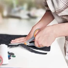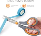 Made in stainless steel with titanium coated, blades corrosion resistant, stay sharper longer. Titanium-fused blades remain sharp for 100,000+ cuts, surpassing stainless steel. Soft-grip handles for comfortable use; can be used left- or right-handed, give you good experience. Adjustable brass and stainless-steel blade pivot for strength and smooth opening and closing. Ideal for paper, cardboard, light line, fabric and other materials. Product dimensions: 8.4 x 3 x 0.8 inches. Product Description Multipurpose Scissors Multipurpose scissors ideal for paper, cardboard, plastic packages, fabric, tapes etc. Suitable for college middle school students and teachers in school, office, home use. Soft-grip handles for comfortable use; can be used left- or right-handed, give you good experience. Ergonomic Comfort Handles Sharp Edge Durable Titanium Non-stick Blades Reinforcement Screw