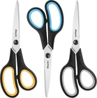 Scissors All Purpose, iBayam 8" Heavy Duty 3-Pack, Yellow, Grey, Blue Product Details Color: Yellow, Grey, Blue Material: Stainless Steel, Rubber Brand: iBayam Blade Material: Stainless Steel Product Dimensions: 8.4"W Style: Classic Blade Edge: Straight Handle Material: Rubber Point Style: Straight Hand Orientation: Ambidextrous Unit Count: 3 Count Manufacturer: iBayam Part Number: 3 Pack Item Weight: 10.8 ounces Item model number: 3 Scissors Size: 3-Pack Item Package Quantity: 1 Batteries Included?: No Batteries Required?: No Color: Yellow, Grey, Blue Material: Stainless Steel, Rubber Brand: iBayam Blade Material: Stainless Steel Product Dimensions: 8.4"W 3 Pairs of Quality Straight Handled Scissors -- They strongly allow you to make precise cuts with great control as the blade has the perfect amount of friction, which is very comfortable to use. 3 pairs of straight handled scissors for smooth, efficient cutting scissors for general use. Suitable for teachers' middle/high school classroom supplies. Sharp and Durable -- Durable stainless steel blades enable high-density steel that makes it 3 times harder than normal stainless steel and is smoother cutting. 6 X longer lasting than the previous formula and remain sharp for 100,000 + cuts. Blades stay sharper longer; We chose bright colors, Black Green/Black Red/Black Blue. Different color rubber handles are used in different places, Comfort grip holes let you maintain a comfortable, can be used left- or right-handed. iBayam 8-Inch Comfort Grip Scissors -- 3 special scissors are suitable for most items that need to be cut. It can also be used as a household scissors for cutting open frozen food bags ready for cooking. Convenient, sturdy, especially sharp scissors, very durable Great for cutting burlap, paper, card stock, cardboard, wrapping paper, light line, fabric, tape, photos, coupons, and opening boxes & packaging. Surprised for sewing, tailoring, quilting, dressmaking, cutting patterns, cutting quilting, Vinyl, Leather, and making face masks. Exceptional scissors for multiple uses in various rooms, in the Handcraft Workshop, bathroom, sewing room, laundry room, craft room, at the office, great for most regular household tasks.