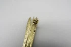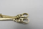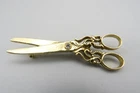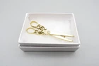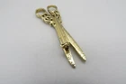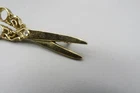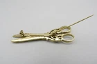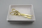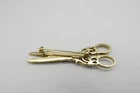Add some sparkle to your outfit with this Scissors Goldtone Brooch/Pin. The intricate design and Clear Rhinestone accents make it perfect for all occasions. This Fashion Jewelry piece is 2.75 inches in length and features a round-shaped Rhinestone as the main stone. The gold tone Pin/Brooch is perfect for costume jewelry lovers and would make a great addition to any collection. Get your hands on this unique accessory today and add a touch of glamour to your look. This item appears to me to be in Good condition. There is general wear/light scratches due to use. We ask that you check all photos carefully to determine the condition of the item for yourself. We also ask that you carefully check all photos of the item for condition issues/damage before you purchase this item. This item would be great to add to your collection, or to give as a gift. This items approx. dimensions are L 2.75 in x W 1 in . This item will be shipped with a gift box great for giving as a gift. This item will be shipped priority mailing in a box with bubble and peanuts.