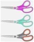 Scissors, Ibayam 8" Multipurpose Scissors Bulk 3-Pack, Ultra Sharp Blade Description Item model number 3-scissors Item Package Quantity 1 Style Classic Blade Edge 3D Blade Design Color Mint, Grey, Purple Part Number 662888@ Product Dimensions 8.4"L x 3"W Material Stainless Steel Country of Origin China Batteries Required? No Brand IBayam Item Weight 0.01 ounces Handle Material Rubber Batteries Included? No Item Dimensions LxWxH 8.3 x 3 x 0.4 inches Usage Nonstick Cutting Shape Straight Size 3-Pack Is Discontinued By Manufacturer No Hand Orientation Left Hand, Right Hand Manufacturer iBayam Definitely household scissors -- Great for cutting burlap, paper, cardboard, light line, fabric, tape, photos. Perfect for sewing, tailoring, quilting, dressmaking, cutting patterns, alterations, hand craft. Exceptional scissors for multiple uses around the home, in the Handcraft Workshop, in the bathroom, on the dresser, in the study, in the laundry room, mail room, craft room, at the office, great for most regular household tasks 3 Pairs of Quality Straight Handled Scissors -- They are strongly Allow you to make precise cuts with great control as the blade have the perfect amount of friction, Very comfortable to use. 3 pairs of straight handled scissors for smooth, efficient cutting. Competitive Price -- Durable stainless steel blades enables high-density steel that makes 3 times harder than normal stainless steel and are smoother cutting. 6X longer lasting than the previous formula and remain sharp for 100,000+ cuts. blades stay sharper longer; We chose bright colors, green / purple / orange. different color rubber handles are used in different places, Soft-grip holes let you maintain a comfortable, can be used left- or right-handed. iBayam 8-Inch Soft-Grip Scissors -- 3 special scissors are suitable for most items that need to be cut. It can also be used as a household scissors for cutting open frozen food bags ready for cooking. Convenient, sturdy, especially sharp scissors, very durable.