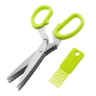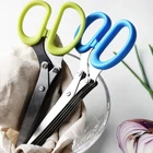 Scissors Scallion Herb Cutter Onion Kitchen Stainless Steel Vegetable Muti-Layer 1 Piece Herb Scissors with 5 Blade, Muti-layers Kitchen Scissors Scallion Cutter Green Onion Spice Herb Scissors Multifunctional Vegetable Cutter Home Kitchen Accessories Features: High quality 5-Layered sharp stainless steel blades will allow you to cut herbs efficiently in seconds. Soft & anti-slip handle with comfortable finger holes. Comes with a cleaning comb helps to remove and clean the food debris easily. Perfect for cutting shredded kelp, nori, meat and various herbs such as basil, parsley, cilantro, mint, chives, rosemary, etc. Easy to clean & Dishwasher safe. A practical & multi-functional helper for you in kitchen. Specifications: Item Name: 5 Layer Herb Scissors Material: Stainless Steel, PP Design: 5 Blades Size: 19cm * 7.5cm Handle Color: Blue, Green Application: Various Herbs Such as Basil, Parsley, Cilantro, Mint, Chives, Rosemary, etc Package Included: 1 x Stainless Steel Herb Scissors Thank you for shopping with us!