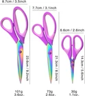 Scissors Set of 3-Pack Scissors All Purpose Comfort-Grip Handles Sharp Sciss DISCRIPTION PREMIUM MATERIAL: The blades of scissors are made of high strength stainless steel, anti-rust and durable for use, with 3x hardness of common stainless steel and stays sharper longer TITANIUM COATING: Blades with iridescent titanium coating are excellent in anti-corrosion performance, quite capable for resisting adhesion like glue and tape, suitable for almost all kinds of tasks COMFORT GRIP HANDLE: Soft ergonomic handle made of PP and TPR provides comfortable and good control for your fingers.can be used left- or right-handed WIDE RANG OF USE: Easy to cut flimsy paper, cloth, ribbon, and thread, suitable for household, office and school use MULTIPLE SIZES: You will get yarn titanium crafts scissors set of 3-pairs. Includes 9.2 inch dress making scissors, 8.5 inch craft scissors and 5.6 inch embroidery scissors
