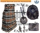 Scottish Men's Kilt Traditional Highland Dress Tartan Kilts What's Include in this Package? 1 - Kilt · Ideal for any formal or informal occasion. · Made from fine quality heavy and durable Acrylic Wool. · Pure cotton lining for maximum comfort. · Pleated to the sett. · Each size has a regular 24" drop. · Three real leather straps allow the kilt to be adjusted by 2.5". · Machine washable. 2 - Celtic Cantle Antique Sporran Full Dress Kilt Sporran Celtic Cantle Antique Finish. . This Seal Skin Sporran with 3 Seal Skin Tassels. . Scottish & Highland Kilt Sporran comes with Free Adjustable Leather Strap & Antique Finish Chain. . Leather Sporran Chain 50" Long Adjustable. . Thistle Kilt Pin and Brooch Badge Set Fly Plaid High Quality Antique Finish. . Scottish Black Leather Belts Thistle Buckle · Sporran Chain that will fit waist sizes from 30"- 56" 3 - Thistle Style Buckle · Buckle is made from a durable high finish material. 4 - Thistle Kilt Pin · Traditional Thistle kilt pin made from Stainless Steel. 5. Matching Tartan Flahes A perfect Choice for Formal as well as Parades and informal gatherings · Made of Machine Washable Acrylic Fabric · Fully Lined with Premium Quality Satin Shipping and Handling Time Worldwide Shipping Ship Within 2 or 3 Business Days Return Policy 30 Days Return and Exchange is accepted.