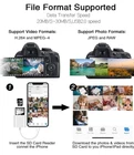 Sd Card Reader for iPhone iPad Camera,Dual Card Slot Memory Card Reader Supports SD and TF Card Trail Camera Viewer Sd Card Adapter Portable Micro Sd Card Reader No Application Required Plug and Play Brand new. Opened for picture Material: plastic / ABS Weight:0.8 ounces Size:5.3* 1.6* 1.5inches High-speed transmission:SD card reader for iphone data transmission speed can reach 20MB/s~30MB/s Maximum support capacity: 512GB Support Formats:SD card reader for iphone/ipad supports standard photo formats (including JPER and RAW) and SD and HD video formats (including H.264 and MPEG-4).