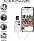 2 in 1 Double Card Slot: The sd card reader for sd and micro sd memory card, support all iPhone with iOS 9.2 and up and iPads with iOS 8.0 or later,It's easily download photos or videos from SD cards directly to the iPhone or ipad, and share videos or photos with friends and relatives anytime and anywhere.(Tips: not fit for iPhone 15 Series and other USB-C devices) High Speed Data Transmission: The sd card reader for iphone data transmission speed can reach 20MB/S~30MB/S,the memory sd card reader for iphone can transmit photos and videos of your camera to your device in a few seconds, saving a lot of time. Plug and Play: You don't need a computer as a medium or install any applications when you use the memory card reader.,plug and play ,please wait for 5 seconds after connecting the device. Capacity and Format Support: The sd card reader support standard photo formats including JPER and RAW,and SD,HD video formats including H.264 and MPEG 4,supports the memory card with a maximum capacity of 512GB Do the Best: Using the sd card reader, Will bring you more convenience,Using the micro sd card reader,Will bring you more interesting moments A1135