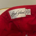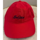 Classic red cotton baseball cap featuring the elegant Sea Island embroidered logo in navy blue. This timeless accessory offers both style and functionality with its adjustable metal strap closure. Perfect for casual outings, beach days, golf courses, or adding a sporty touch to your everyday looks. The clean design and quality construction make it a versatile addition to any wardrobe. Keywords: sea island cap, red baseball hat, adjustable cap, cotton cap, embroidered logo, casual hat, summer hat, sports cap, golf cap, beach hat