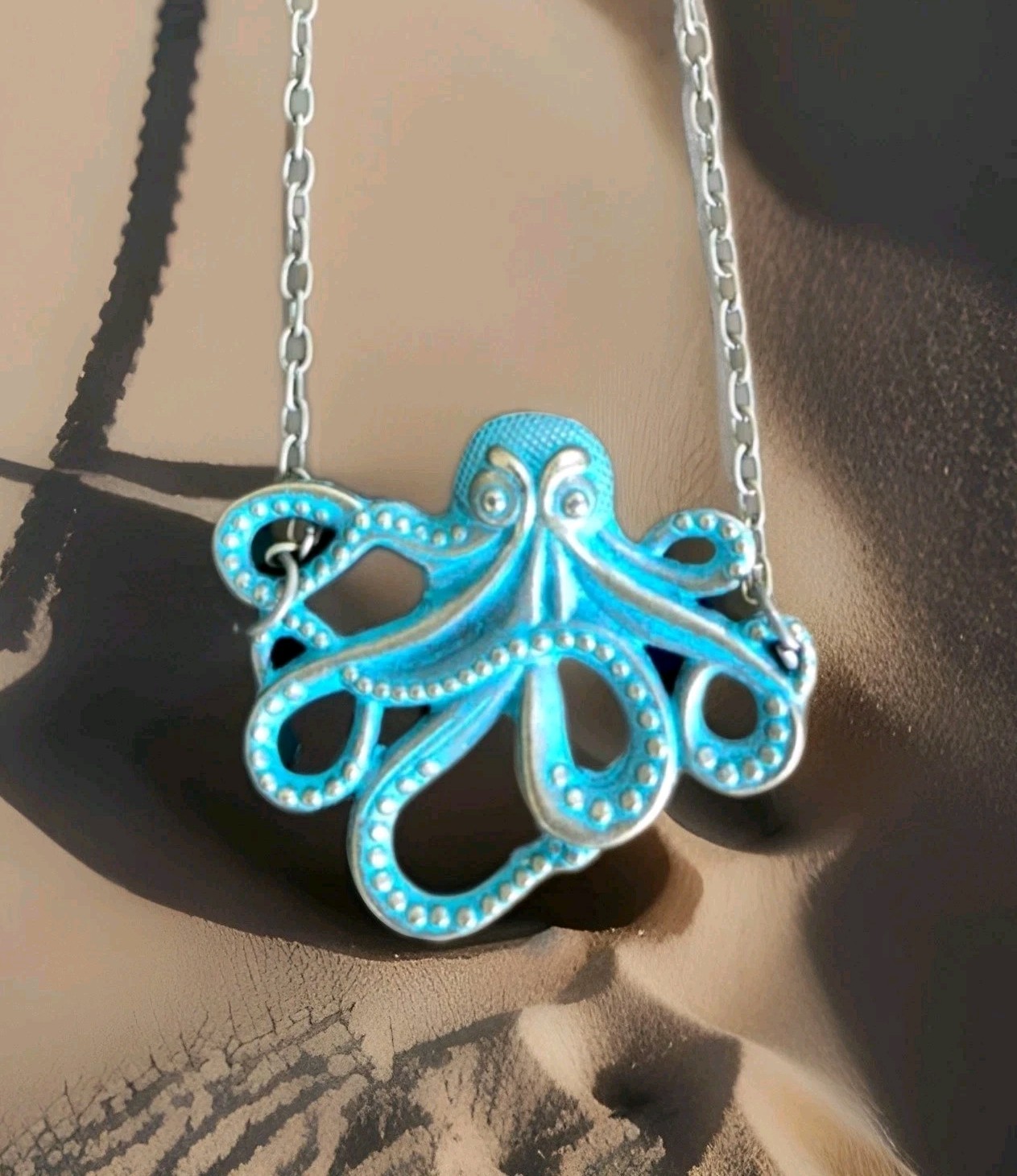 NEXT DAY SHIPPING Product Details Material : Metal Chain, Pendant Design : Kraken Octopus Sea Monster Pendant Colors : Blue & Green (Sea-inspired design) Style : Fantasy, Nautical, Ocean-Inspired Perfect For : Fantasy Fans, Ocean Lovers, Unique Jewelry Enthusiasts Condition : New This Kraken Octopus Necklace features a striking blue and green sea monster pendant , making it the perfect statement piece for those who love fantasy , ocean-inspired designs , or unique jewelry. The kraken octopus pendant evokes the mystery and allure of the deep sea, while the vibrant blue and green colors give it a magical touch. Whether for daily wear or special occasions, this necklace is sure to be a conversation starter. Perfect for fantasy fans , aquatic-themed jewelry , or a unique gift .