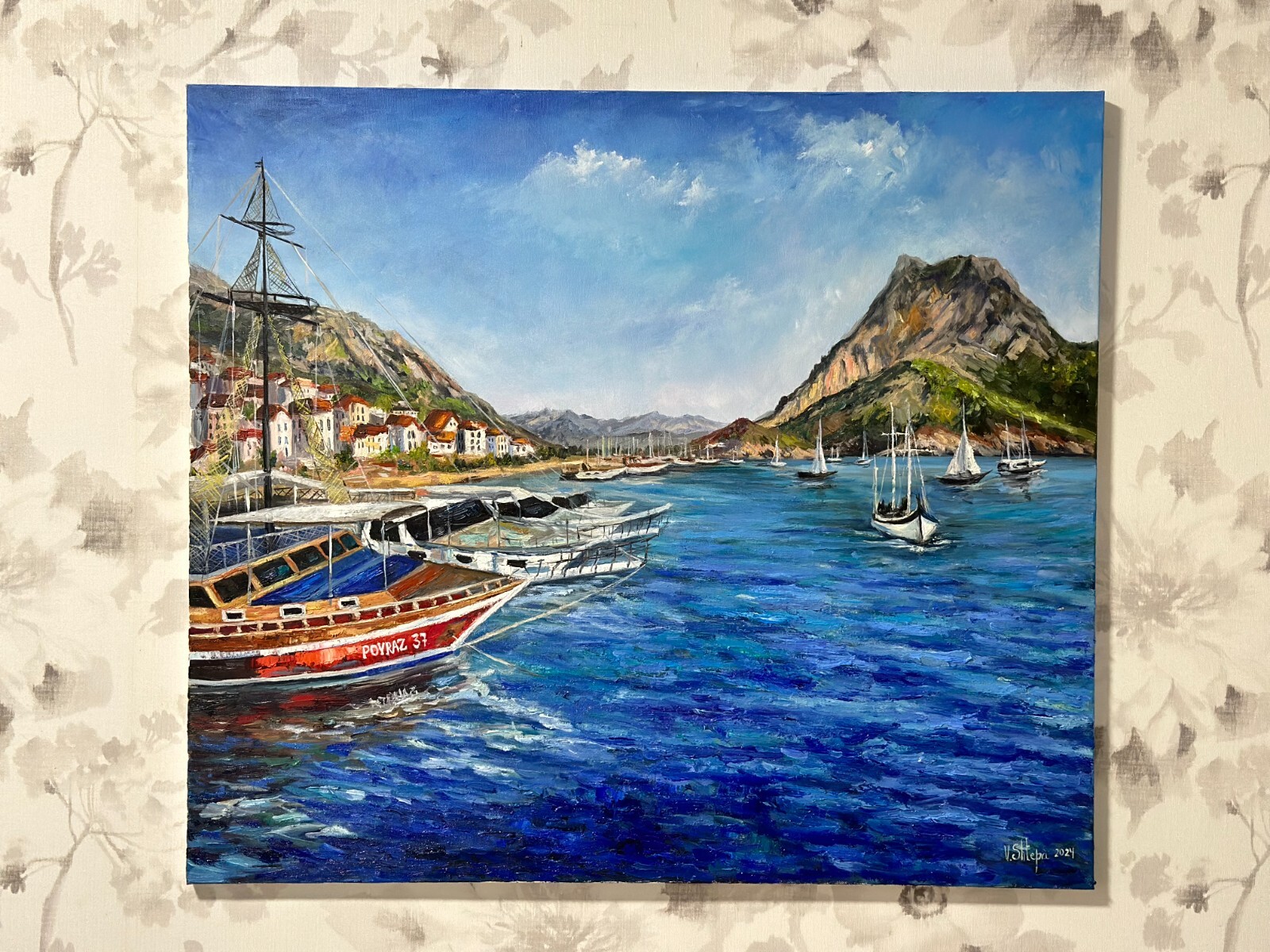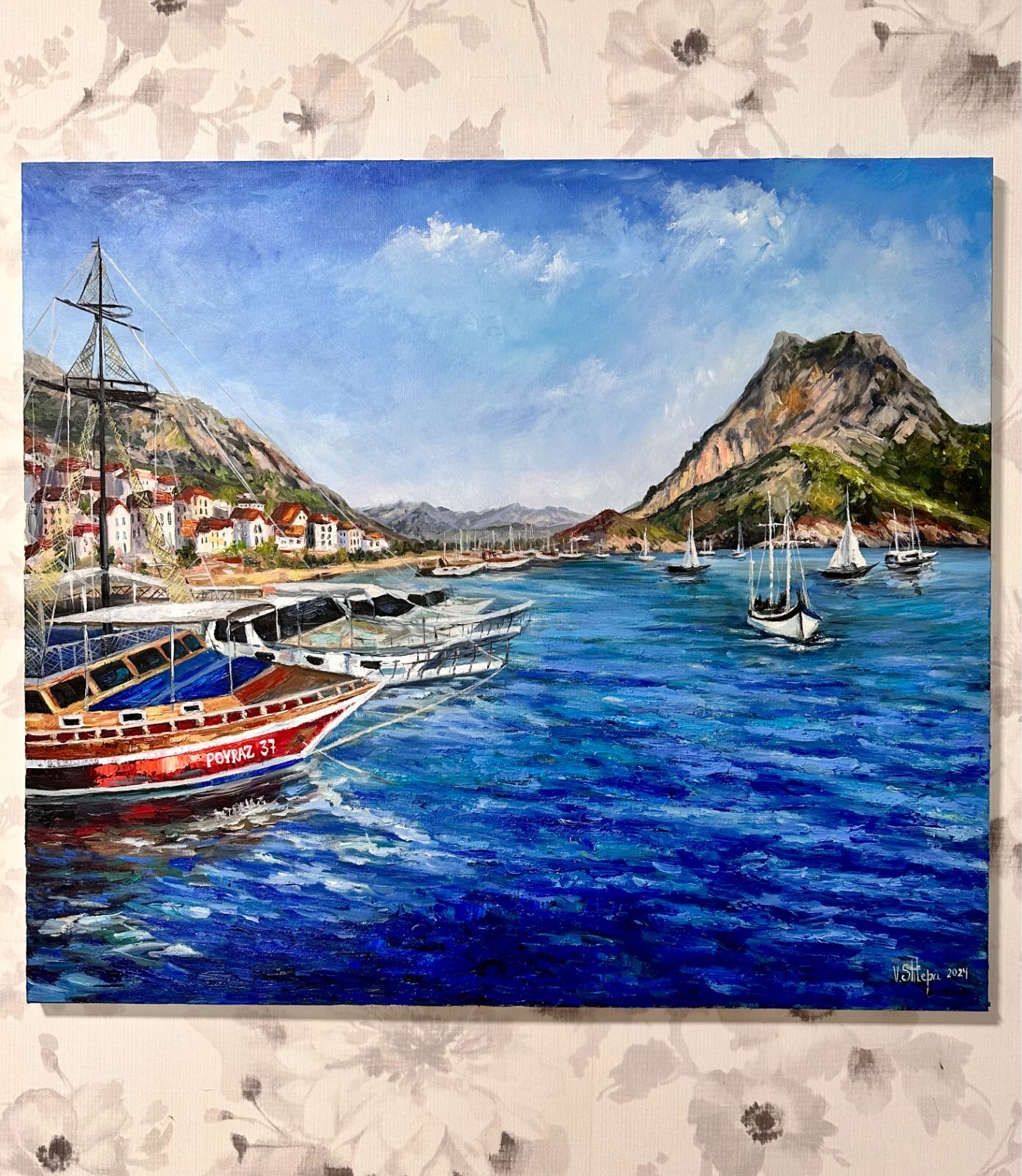 Will be delivered in a roll ! This stunning original oil painting titled "Seascape" is a one-of-a-kind piece by artist Valeria Shtepa. The painting features a beautiful sailboats surrounded by the ocean, with waves crashing against the shore. The attention to detail and use of oil paint make this piece a true masterpiece. Measuring 28x32 inches, this painting is unframed and signed by the artist. It is a perfect addition to any art collection and is sure to impress anyone who sees it. The painting was produced in 2024 in Ukraine and is a great example of both realism and impressionism styles. Don't miss out on the opportunity to own this incredible piece of art.