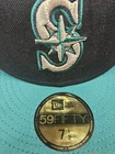 Add this Seattle Mariners 59Fifty Fitted Hat Cap to your collection! This MLB Baseball Retro Logo hat is perfect for any occasion, whether you're going to a baseball game, traveling, or even going to a party or cocktail event. The hat features a solid pattern with the Seattle Mariners logo prominently displayed on the front. This fitted hat comes in a size 7 1/2 and is made by New Era, a trusted brand in the industry. The hat is perfect for streetwear and sports enthusiasts who want to show their support for the Seattle Mariners. Get your hands on this retro-inspired hat and head to the next game in style!