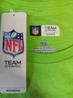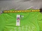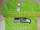 The product is a women's size medium Seattle Seahawks T-shirt in neon green, featuring the NFL team's branding. It is designed as fan apparel for supporters of the Seattle Seahawks, a team in the National Football League (NFL). The shirt is a sporty and stylish way for female fans to show their support for the team and display their love for football.
