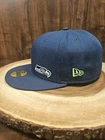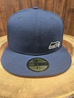 Show your love for the Seattle Seahawks with this stylish New Era 59Fifty fitted hat cap. The solid blue color and baseball cap style make it perfect for any casual or sports occasion. The cap is made of high-quality materials and features a fitted design for maximum comfort. It's perfect for travel, football games, parties, and even workwear. This hat is not only great for Seattle Seahawks fans, but also for anyone who loves streetwear and NFL football. The cap is available in size 7 1/2 and is suitable for men. Get your hands on this trendy accessory now and complete your look.